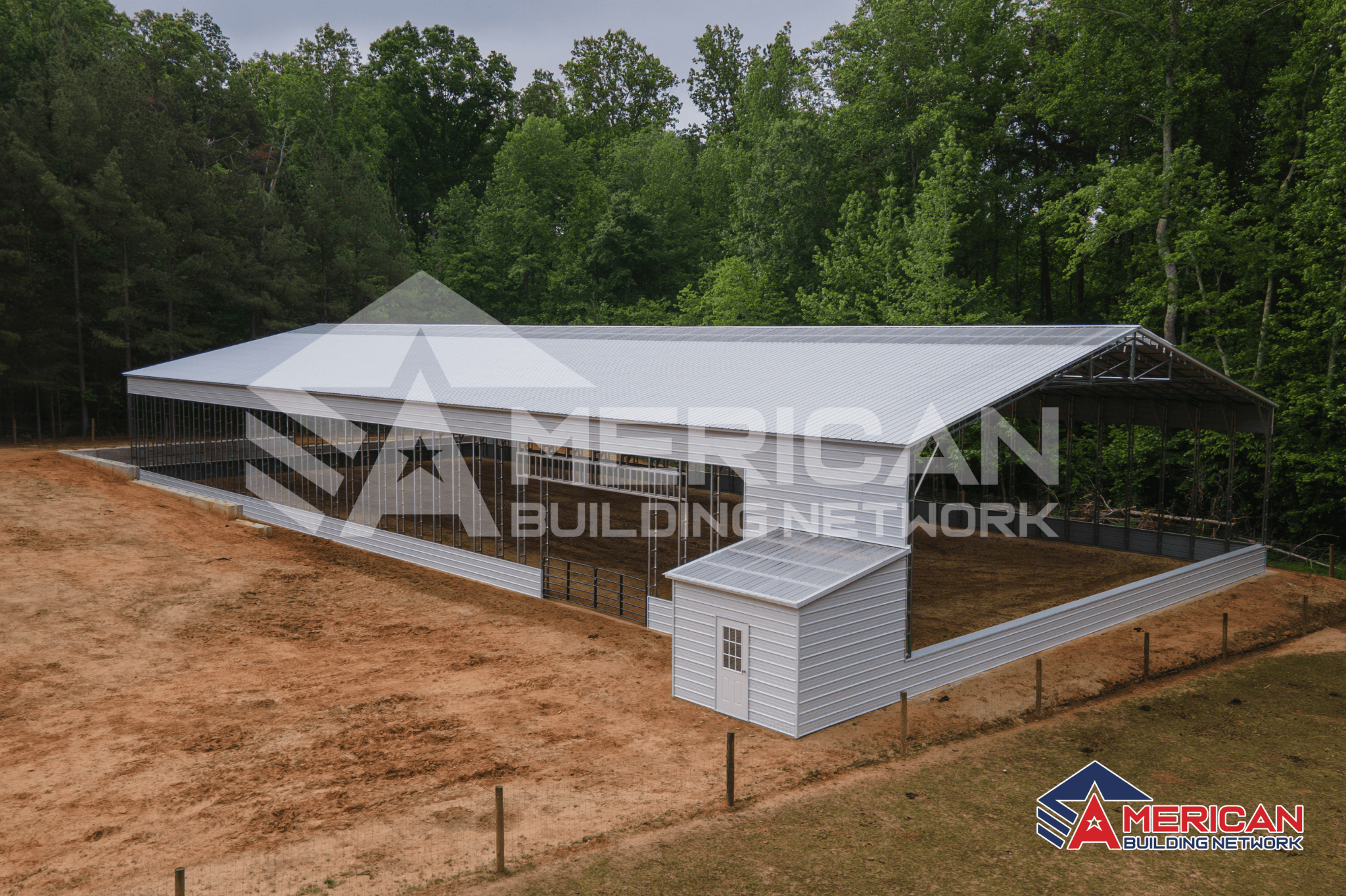Metal Lofted Barns: Steel frames and siding, built tough and cost-effective.